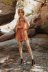 Look fabulous and feel free with The Mabel! This rust-colored romper flaunts a spaghetti strap design and elastic waist that's oh-so flattering. Its textured fabric and cool silhouette will get you plenty of compliments! (The only thing you'll be missing is a bowl of spaghetti!)