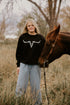 Release your inner cowgirl/cowboy with The Remy sweatshirt featuring a longhorn bull skull. Keep warm and trendy with this black sweatshirt that adds a touch of western charm to any outfit. Yeehaw!!!