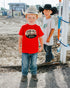 Red unisex fit graphic tee for the good ole boys in your life. This tee runs true to size. Rabbit Skins.