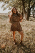 Balloon sleeve mini dress with ruffle detail. High smocked neck with ruffles and long balloon sleeves.
