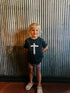 Get your kid looking cool in the Cross Kids Tee! In a sleek charcoal color, this tee is perfect for any little rebel. Made with high-quality materials, it's both stylish and durable. Perfect for playdates or adventures, this tee will have your kid standing out in any crowd. Fits true to size.
