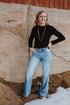 Long sleeve turtle neckline with ribbed fabric and straight hem.