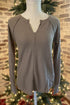 Mocha Mini waffle thermal raw cut edge detail v neck top. 100% polyester. -100% cotton. Style: Long sleeve V neck Pattern: Textured Body size: Young contemporary Label: Labeled Origin: Imported