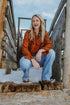 This pretty eyelet top features pretty yoke line with ruffles on top with long sleeves. A line bodice with easy fit. Semi sheer. May need undergarment to cover the small holes in the top. Rust in color.