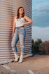 Cowhide bootie with a round toe. Blocked 3 1/4 in. heel with a back zip for easy on and off. Red leather lining.