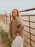 Leopard corduroy shirt with pockets and functional buttons. Mocha with a grey combo.