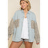 This "Never Gets Old" denim jacket will be that perfect denim jacket that can be thrown on over any outfit to make it look F-A-B. Designed in a relaxed oversized fit with mixtures of fabrication of solid denim and leopard print denim on sleeve and pocket front. Comes in a high and low length with button closure on front and collar.