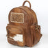Genuine leather backpack with cowhide patch and engraving design. Cupholders on the sides. Front pocket.