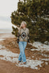 Aztec pattern knitted tan sweater with black and white print. Runs a little big.