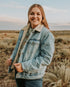 Light denim sherpa jacket. Length 25.5" (in size M).