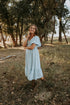 Flutter sleeve midi dress with smocked bodice and v neck.