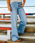 Super high rise wide leg jean. Comfort stretch denim, wide leg, and full length.