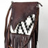 Black/white aztec blanket purse with a chocolate flap. Tooled shoulder strap.