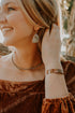 Brown/turquoise earrings coming in studs and dangles.